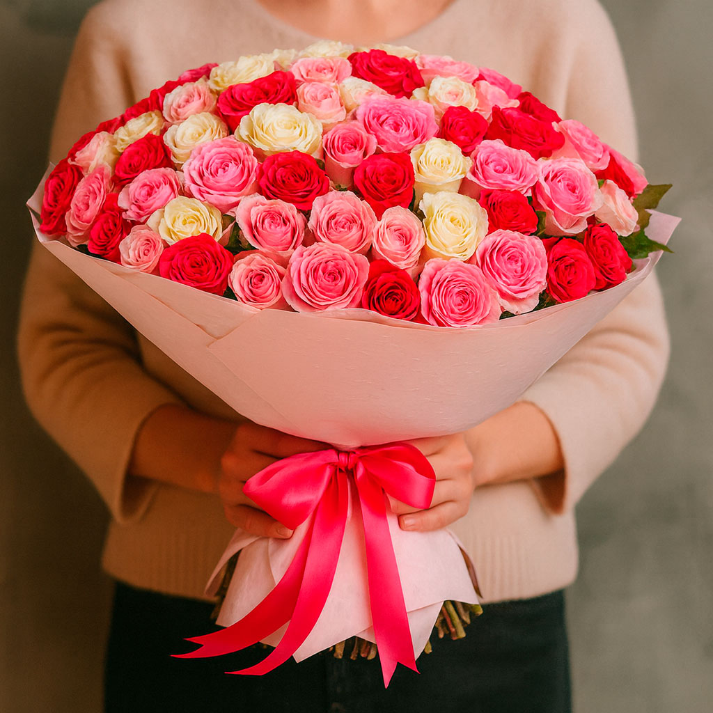Мы используем только свежие цветы, которые поступают в магазин напрямую с плантаций и оранжерей. Каждый букет собирается вручную опытными флористами.