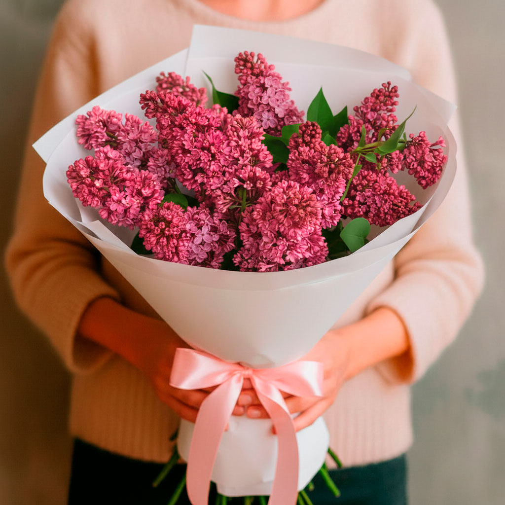 Монобукет сирени «Фиолетовый секрет» — настоящий оркестр цветов, где каждый компонент идеально сочетается с остальными. Все детали продуманы до мелочей, а цветовая палитра создает своеобразную атмосферу.